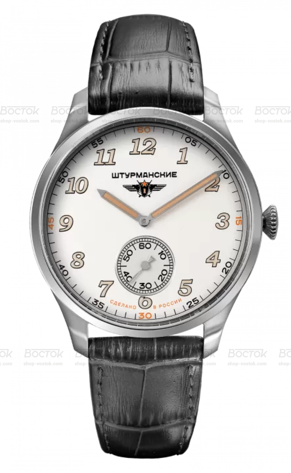 Запуск на орбиту Земли первого искусственного спутника стал настоящим прорывом в освоении космоса. Штурманские увековечили это революционное событие в специальной коллекции. Часы Спутник Наследие Малая Секунда выводят понятия красоты, надежности и функциональности на новый, ранее недостижимый уровень. Часы выглядят строго и в то же время стильно и элегантно. Циферблат закрыт выпуклым минеральным стеклом. Темно-синий кожаный ремешок комфортно облегает руку и перекликается по цвету с циферблатом. Люминесцентные индексы видны даже в темноте. Внутри стального корпуса спрятан японский кварцевый механизм VD78 Seiko, который работает от батарейки и отличается погрешностью в ходе не более 10-20 секунд в месяц. Часы защищены от влаги. Особую оригинальность модели придает миниатюрный секундный циферблат с изображением спутника.